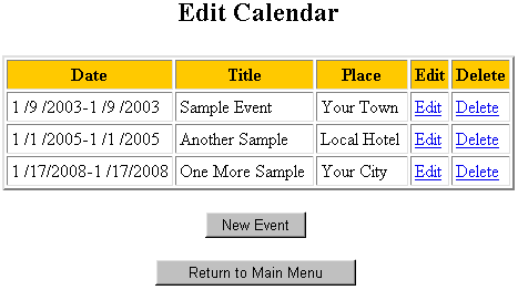 Let the world know what event you are planning with EZ-Calendar. Enter the name, place, time, and description of an event, and your event page is automatically created. When the event date passes, the event is conveniently removed for you!